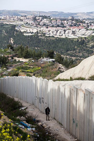 Radikale Siedler:innen wie er verfolgen beständig nur das eine Ziel, den Palästinenser:innen so viel Territorium wie möglich abzunehmen und die darauf lebende Bevölkerung zu verdrängen. Ihre Minister setzen offen auf einen Krieg, den sie als Anlass nutzen könnten, die Palästinenser:innen vollständig aus der Westbank zu vertreiben. Während wir weiter durch das hügelige Gebiet fahren und in der Ferne Jordanien mit seinen kargen Felsen blau dämmert, beobachten wir drei ultraorthodoxe Jugendliche, die mit Steinschleudern auf einen palästinensischen Bauern zielen. Später werden uns palästinensische Kollegen erzählen, dass sie nicht mehr allein auf ihre Felder gehen können, weil sie regelmäßig tätlich angegriffen werden. Yehuda zitiert den rechtsradikalen Minister Smotrich, der die palästinensische Hoffnung auf eine einvernehmliche Friedenslösung ausmerzen möchte. Shaul gibt uns zum Schluss noch nachdrücklich eine Botschaft mit, die sich vor allen Dingen gegen ein Missverständnis europäischer Regierungen richtet: Man könne zwischen Siedlerbewegung und israeli scher Regierungspolitik nicht unterscheiden, ja man müsse leider im Gegenteil davon sprechen, dass die Ausweitung der Siedlungen ein „kriminelles Unternehmen ist, das der israelische Staat betreibt“.