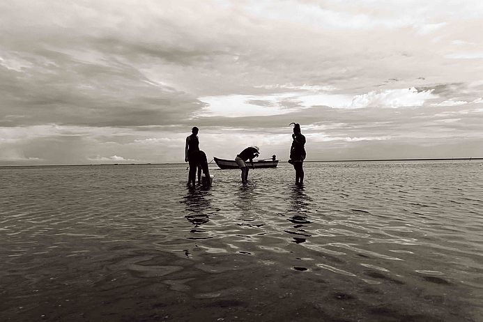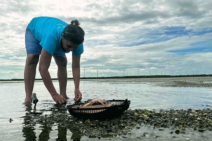 Auch das Offshore-Projekt ruft große Bedenken hervor. Hinter ihm steckt die französisch-deutsche Qair Group, ein Anbieter für die Finanzierung und den Betrieb von Anlagen für erneuerbare Energien. Im Rahmen des Projekts sollen 128 Windturbinen 20 Kilometer vor der Küste errichtet werden. Die Auswirkungen eines solchen Offshore-Komplexes sind bislang nicht annähernd erforscht. Terramar weist darauf hin, dass die Turbinen inmitten der Fanggewässer der Fischer:innen eine akute Gefahr für die sensible Meeresflora und die Vielfalt der Meeresfauna darstellen. Unterstützt werden sie dabei von Forschungsinstituten der Bundes- universität von Ceará. Zudem stehen die Ökosysteme rund um die Küste bereits jetzt unter Druck. Der Klimawandel nagt an ihnen. An manchen Küstenabschnitten hat sich das Meer in den letzten Jahren acht bis zehn Meter landeinwärts gefressen. So auch in Curral Velho.