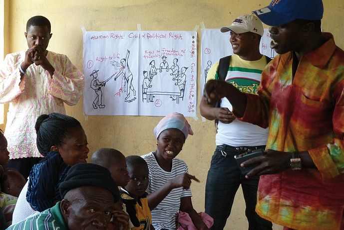 Since 2007, medico supports the NMJD paralegals programme in the Kono district. To strengthen local accountability, NMJD has trained and deployed human rights paralegals in communities to help people access justice-providing institutions, to promote alternative dispute resolution, to educate people about their rights and responsibilities and to observe and report on human rights abuses and violations.