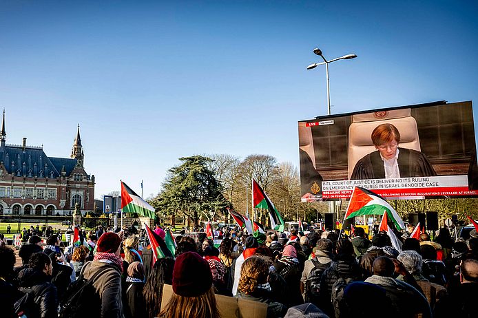L’entrée en salle de la délégation sud-africaine à la Cour internationale de justice est un grand moment d’émotion, mais pas seulement à La Haye. Partout en Afrique du Sud, les audiences sont suivies en direct et des manifestations publiques de soutien sont organisées. « Je suis fière d'être sud-africaine et de faire partie de la communauté juridique à laquelle appartiennent les brillants esprits qui constituent l'équipe juridique de l'Afrique du Sud », a déclaré l'avocate juive Caitlin Le Roith lors d'une réunion de solidarité. « Notre histoire et notre expérience en tant que Sud-Africain:es, ainsi que celles du peuple juif, rendent la demande sud-africaine particulièrement significative pour quelqu'un comme moi ».