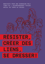 Résister, créer des liens, se dresser! Tel est le nom du Manifeste qui revendique les perspectives politiques et émancipatrices du travail psychosocial. Fort·e·s de notre engagement en tant qu’organisations psychosociales, professionnel·le·s du soutien et militant·e·s issus de quatre continents, nous appelons à la mise en réseau et à la solidarité entre collègues partageant les mêmes convictions: intervenant·e·s psychosociaux·ales, travailleur·euse·s sociaux·ales, psychologues, soignant·e·s, défenseur·euse·s des droits humains — ainsi que tous·tes les allié·e·s.