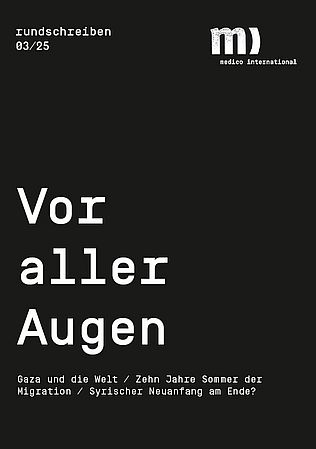 Gaza und die Welt: Seit zwei Jahren sind wir Zuschauer:innen der Verbrechen in Gaza | Zehn Jahre Sommer der Migration: Ein Rückblick auf ein Jahrzehnt migrantischer Kämpfe und medicos Kooperationsarbeit | Syrien nach den Gewaltausbrüchen gegen Minderheiten: Hat der Neuanfang noch eine Chance?