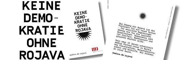 In unserer Erklärung "Eine Frage der Demokratie" begründen wir unsere Haltung ausführlicher. Außerdem haben wir ein Plakat, Postkarten und Aufkleber gestaltet, mit denen auch Sie Solidarität mit Rojava zeigen können. Sie können das Material hier bestellen.
