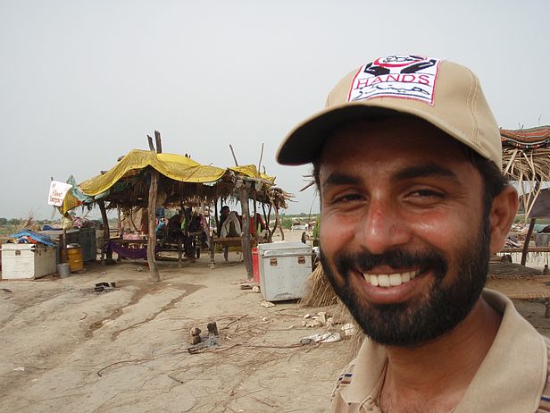 Murtaza Nonari hat keinen leichten Job in diesen Tagen. Als Nothilfe-Koordinator der pakistanischen medico-Partnerorganisation HANDS (Health and Nutrition Development Society) organisiert er den Aufbau von Flüchtlingslagern und die mobilen medizinischen Teams in einer der am schwersten von der Flut betroffenen Regionen im Süden Pakistans. Trotz Dauerstress und der großen Not um ihn herum hat er sich sein einnehmendes Lachen bewahrt. Normalerweise arbeitet er im Gesundheitsprogramm von HANDS und lebt auch selbst mit seiner Familie im Distrikt Kandhkot. Als die Wassermassen begannen in der Provinz Sindh ganze Landstriche zu überfluteten, war er jedoch gerade in Berlin. Die Heinrich-Böll-Stiftung hatte ihn zum Kongress der "Global Young Greens" eingeladen, denn Murtaza versucht mit einigen Gleichgesinnten in Pakistan per email und Facebook ein grünes Netzwerk aufzubauen. "Es wäre ein großer Erfolg, wenn wir bei den nächsten Kommunalwahlen antreten können. Es ist nicht leicht etwas jenseits der etablierten Parteien aufzubauen, die seit 15 Jahren die immer gleichen Slogans verkünden", erzählt der Aktivist. Ökologie und soziale Gerechtigkeit sind seine Themen. Mit den Zusammenhängen von Klimawandel und Armut will er sich demnächst verstärkt beschäftigen. Jetzt aber steht die akute Nothilfe für die "Klimaflüchtlinge" im Vordergrund. Als HANDS den Nothilfe-Fall deklarierte um seine Arbeit ganz auf die Flut-Hilfe auszurichten, beendete er (anders als Pakistans Präsident Zardari) umgehend seine Europa-Reise und flog zurück.