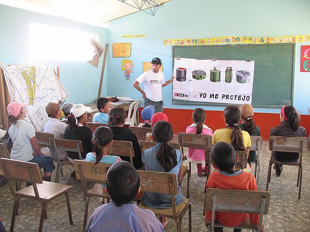 Zum Schutz der Menschen klärt TDP die Bevölkerung über die Minengefahr auf. Sie weisen auf die fatale Wirkungsweise von Minen und Sprengfallen hin, verteilen Infobroschüren und laden zu Workshops ein, um die Bevölkerung für die Gefahren der explosiven Kriegshinterlassenschaft zu sensibilisieren. Männer, Frauen, Kinder, die indigene und afrokolumbianische Bevölkerung - für sie alle werden eigene Konzepte ausgearbeitet, die sich an die Lebensrealität der jeweiligen Bevölkerungsgruppen anpassen. Die ganze Gemeinde wird beteiligt, wenn es darum geht, Schutzkonzepte zu erarbeiten, die helfen sollen, die jeweilige Gefahrenlage zu erkennen. So haben auf einem Workshop 2011 die Bewohnerinnen und Bewohner einer indigenen Gemeinde im Norden Caucas eine Gefahrenkarte erarbeitet, auf der die tödlichen Hinterlassenschaften markiert wurden. „Es war erstaunlich“, sagte ein Teilnehmer des Wokshops „wie viel wir eigentlich über die Gefahren wussten, aber wir müssen unser Wissen teilen und in der Gemeinde darüber sprechen.“ Mit der Gefahrenkarte wurden nun zumindest tödliche Gebiete sichtbar gemacht, dennoch heißt das nicht, dass die Gemeinde nun in Sicherheit leben kann, denn Minen und Blindgänger können überall lauern. Schutzzonen gibt es in dem Konfliktgebiet nicht und so wurden auch Schulen zum unmittelbaren Austragungsort des Konfliktes. Aus allen Schulen mit denen TDP kooperiert, etwa 40 sind es, wird berichtet, dass bewaffnete Akteure (d.h. hauptsächlich FARC und Armee) in unmittelbarer Umgebung agieren; 80% der Schüler/innen und Lehrer/innen sind schon bei Gefechten ins Kreuzfeuer geraten, fast alle hatten Blindgänger auf ihrem Schulgrundstück. Über die Hälfte der Schulen sind bereits von bewaffneten Kräften zeitweise besetzt worden, da die Soldaten sich dort ausruhen und Küchen- und Sanitäranlagen benutzen.