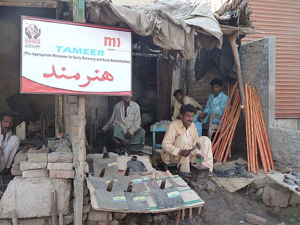 Siebzig Prozent seiner rund 1.200 Mitarbeiterinnen und Mitarbeiter – und drei von sieben Beschäftigten im Management der Organisation – sind Frauen. Mit finanzieller Unterstützung u. a. von medico evakuierten unsere pakistanischen Kollegen und Kolleginnen bereits in den ersten Tagen der Flut 80.000 Menschen. Dazu errichteten sie fünf Flüchtlingslager im Norden der Provinz Sindh und vier weitere im Süden in der Region Thatta. In jedem Camp stellte HANDS Nahrungsmittel und Trinkwasser, Latrinen und Zelte bereit, organisierte die medizinische Versorgung und den Unterricht für die Kinder. Damit die Bauern ihr gerettetes Vieh nicht verloren, sorgte die Organisation für das Futter und die Impfung der Tiere. Auch Hilfen für die Rückkehr der Flüchtlinge waren enthalten.