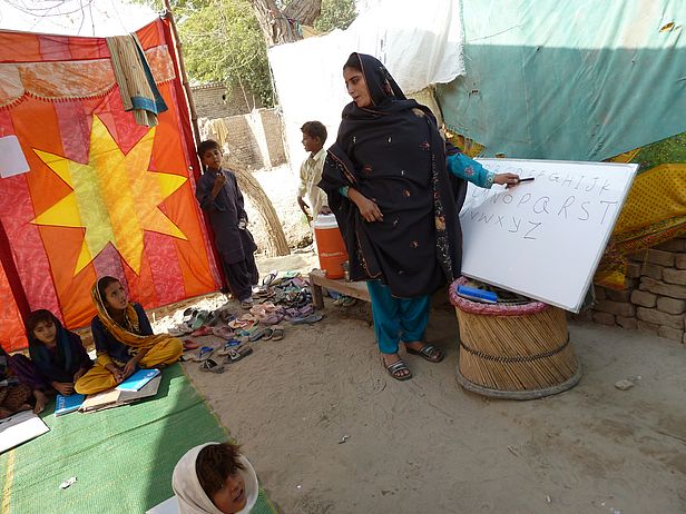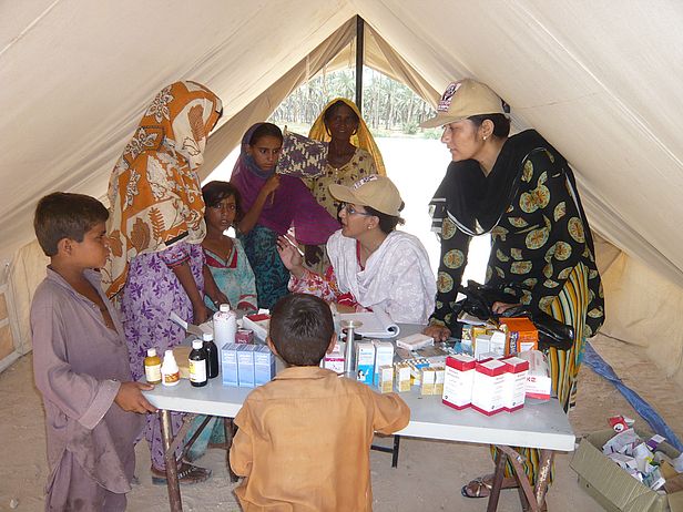 Die insgesamt rund 54.000 Menschen in den Camps mussten selbst mit anpacken. HANDS stärkt die Eigeninitiative der Flutopfer, um zu vermeiden, dass sie zu passiven Hilfsempfängern degradiert werden und sich ihre Ohnmacht noch verlängert. „In jedem Nothilfe- Camp bilden die Betroffenen ein Komitee, das uns als Ansprechpartner dient und die Registrierung der Betroffenen, das Errichten der Latrinen, Kochen, Sauberkeit etc. selbst organisiert“, berichtet Dr. Shaista. Gemeinsam mit ihren beiden Kolleginnen kümmerte sich die Ärztin um die medizinische Versorgung und die Gesundheitsaufklärung. Die Projekte von HANDS sind auf Probleme wie die hohe Müttersterblichkeitsrate und die oft unzureichenden Bildungsmöglichkeiten für Mädchen spezialisiert. Daher setzt die Organisation viele Frauen ein.