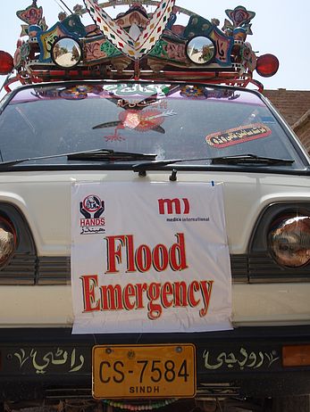 Als im August 2010 ein Fünftel Pakistans im Hochwasser versank, konnte der medico-Partner Health and Nutrition Development Society (HANDS) aufgrund seiner lokalen Verankerung und seines Netzes von Regionalbüros schnell auf die steigende Flut reagieren. In abgelegenen Landstrichen waren die Kolleginnen und Kollegen von HANDS die Ersten und Einzigen – lange bevor die Armee kam.