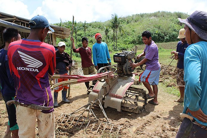 Nur 18 Hektar dürfen die rund 200 Mitglieder der Bauernkooperative gemeinschaftlich bewirtschaften. Möglich und nötig wäre ein Vielfaches. So bleibt den meisten keine andere Wahl, als Land bei den Feudalherren zu pachten oder sich als Tagelöhner zu verdingen. Im Nachbardorf Nabong, das ebenfalls von SOS beim Wiederaufbau unterstützt wird, ist die Situation ähnlich. Die Gemeinschaftsfarm kommt hier immerhin auf 42 Hektar. Allerdings sind von den rund 600 Einwohnern nur 75 in der Kooperative organisiert. „Das Interesse ist groß, aber die Angst noch größer“, erklärt Erning. Er ist Kleinbauer und seit der Ermordung seines Vorgängers im Juni örtlicher PeopleSurge-Sprecher.